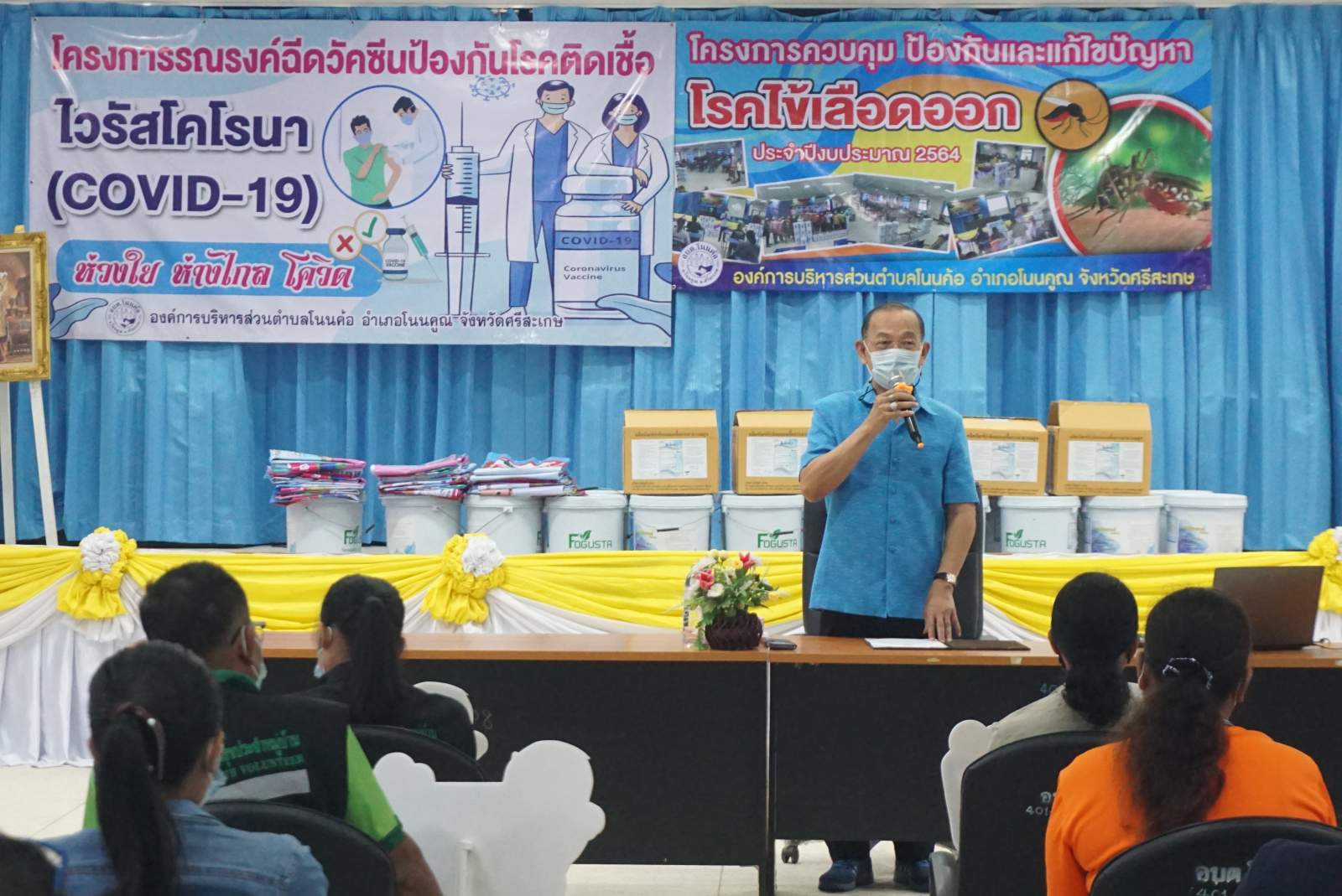 เมื่อวันที่ 28 พฤษภาคม 2564 เวลา 09.00 น. องค์การบริหารส่วนตำบลโนนค้อ ได้จัดโครงการป้องกันและควบคุมโรคระบาด ประจำปีงบประมาณ 2564 กิจกรรมรณรงค์ฉีดวัคซีนป้องกันโรคติดเชื้อไวรัสโคโรนา 2019 (Covid-19) จากสถานการณ์ของการแพร่ระบาดของเชื้อไวรัสโคโรนา 2019 ตามที่กระทรวงสาธารณสุขได้แจ้งสถานการณ์ในประเทศไทย พบผู้ป่วยใหม่จำนวน 3,323 ราย ผู้ป่วยยืนยันสะสม 112,354 ราย รักษาหายแล้ว 66,402 ราย เสียชีวิต 41 ราย เสียชีวิตสะสม 826 ราย (ข้อมูลจากรายงานข่าวกรณีโรคติดเชื้อไวรัสโคโรนา 2019 (Covid-19) ศูนย์ปฏิบัติการด้านข่าวโรคติดเชื้อไวรัสโคโรนา 2019 (Covid-19) กรมควบคุมโรค กระทรวงสาธารณสุข วันที่ 27 พฤษภาคม 2564)